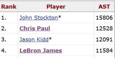 在本场比赛过后,詹姆斯的生涯助攻数为11586次,与历史第三的基德还差495次。