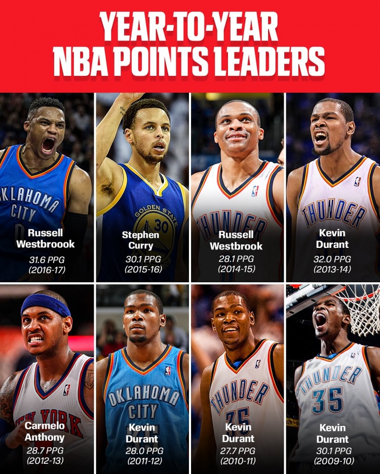 2025-10-21 18:07:25本季会是谁?近16年得分王:KD4次 哈登3次 威少/库里/恩比德2次